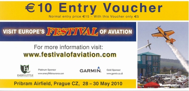 Dla wszystkich odwiedzających Festival of Aviation w Pradze w dniach 28 – 30 maja, 2010 AOPA ma vouchery o nominale 10 Euro.