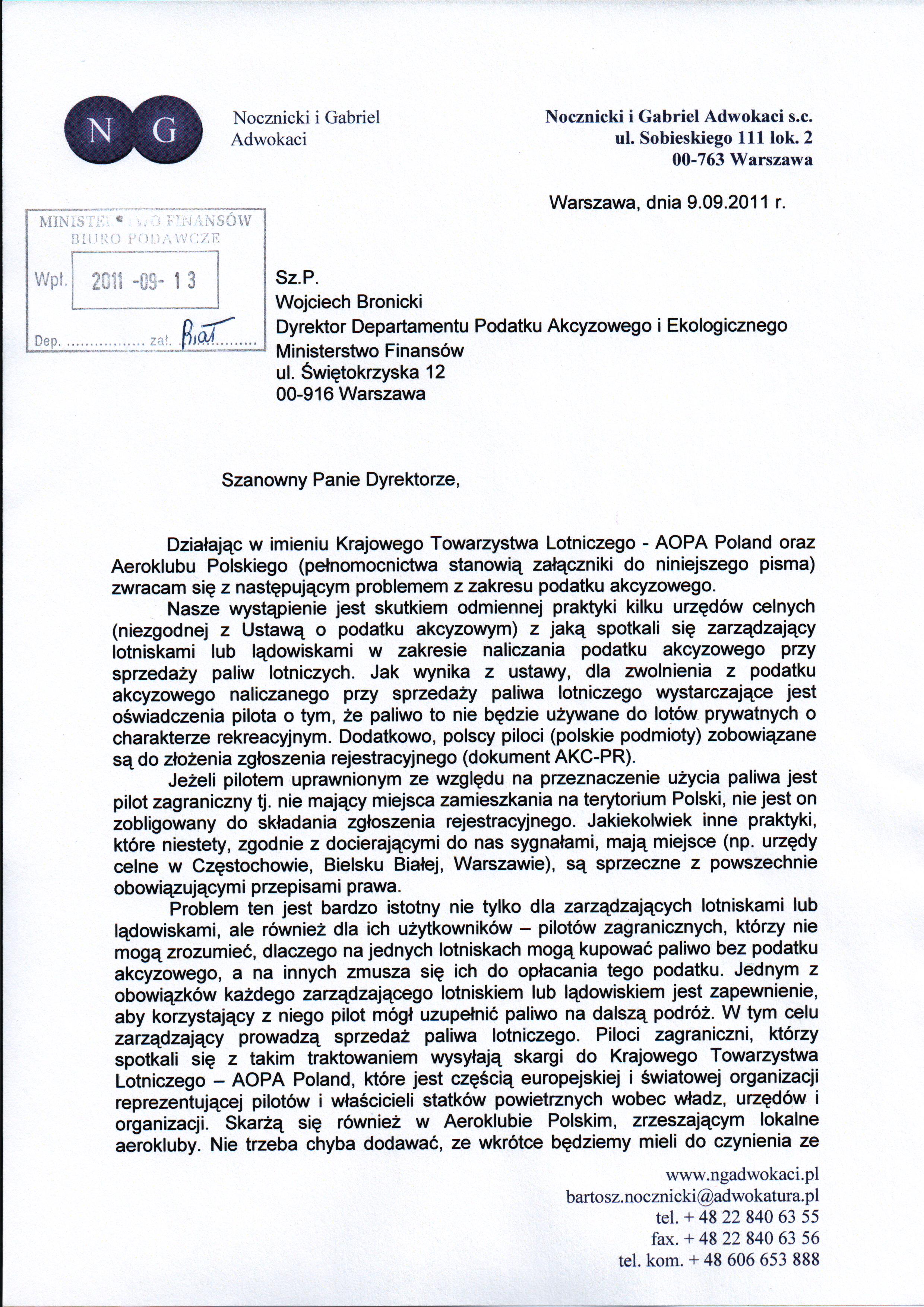 Reprezentują KTL  AOPA Polska Kancelaria Nocznicki i Gabriel Adwokaci s.c wystąpiła do Ministerstwa Finansów z pismem  w sprawie   wymagania  przez niektóre  Izby Celne   druków AKC-PR  od pilotów zagranicznych